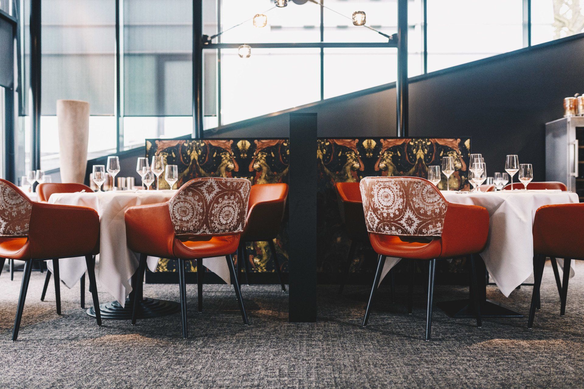 “Maar ook daarbij speelt functionaliteit en een praktische benadering weer een grote rol,” aldus Petri. “Is er genoeg afzetruimte voor het bedienend personeel, lopen de chefs elkaar niet voor de voeten, valt het licht wel prettig op de tafels? Dat zijn allemaal zaken om goed rekening mee te houden en die zo tot verrassende en creatieve oplossingen leiden. Als interior designer moet je een pand als het ware kunnen lezen.”